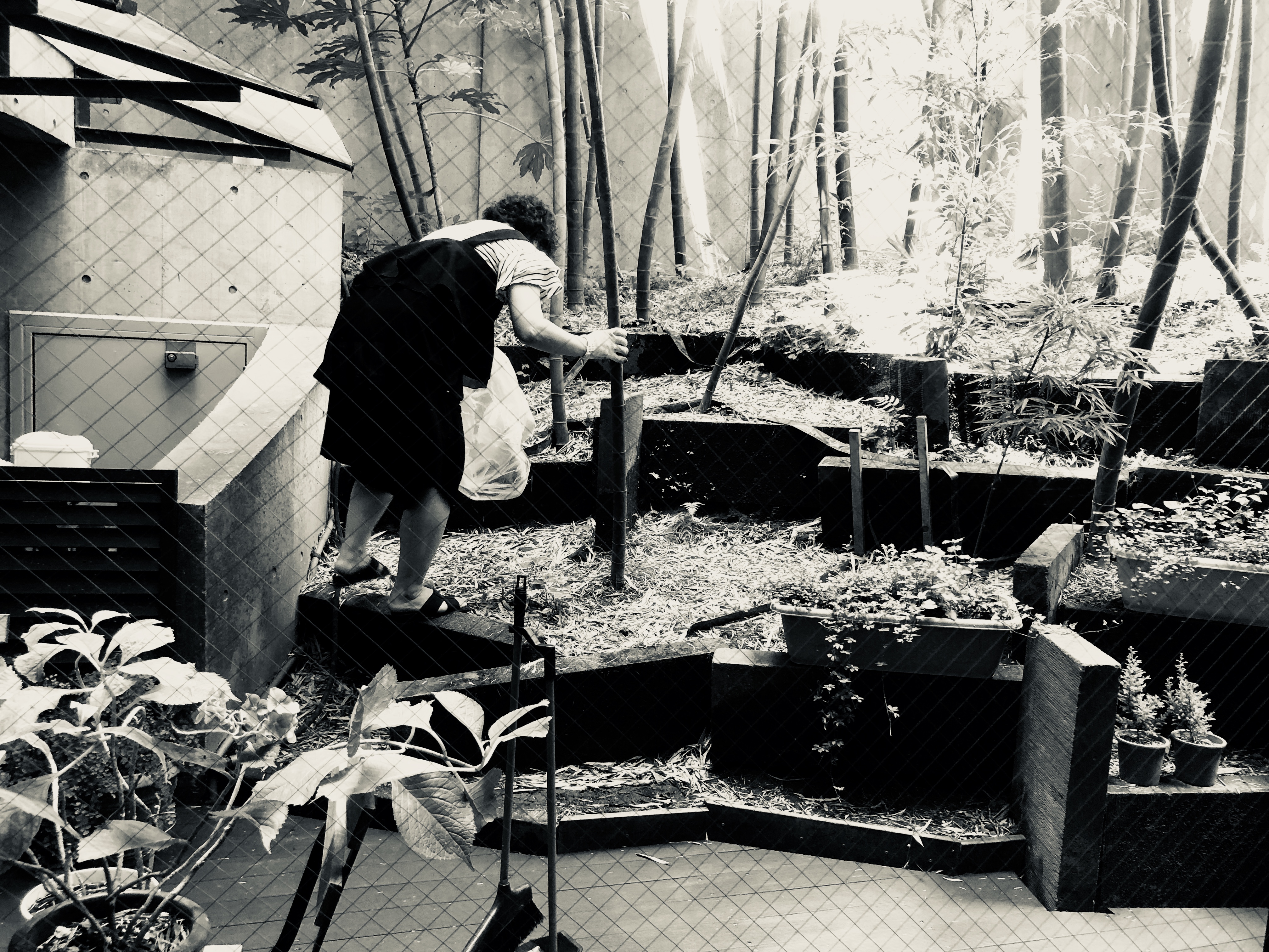 最後はもうすぐ七夕だから、庭に折れてた竹を飾りました。